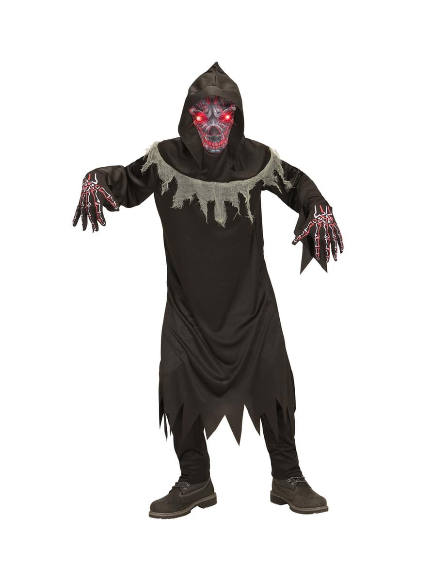 Incluye: túnica, guantes y máscara con capucha y ojos luminosos