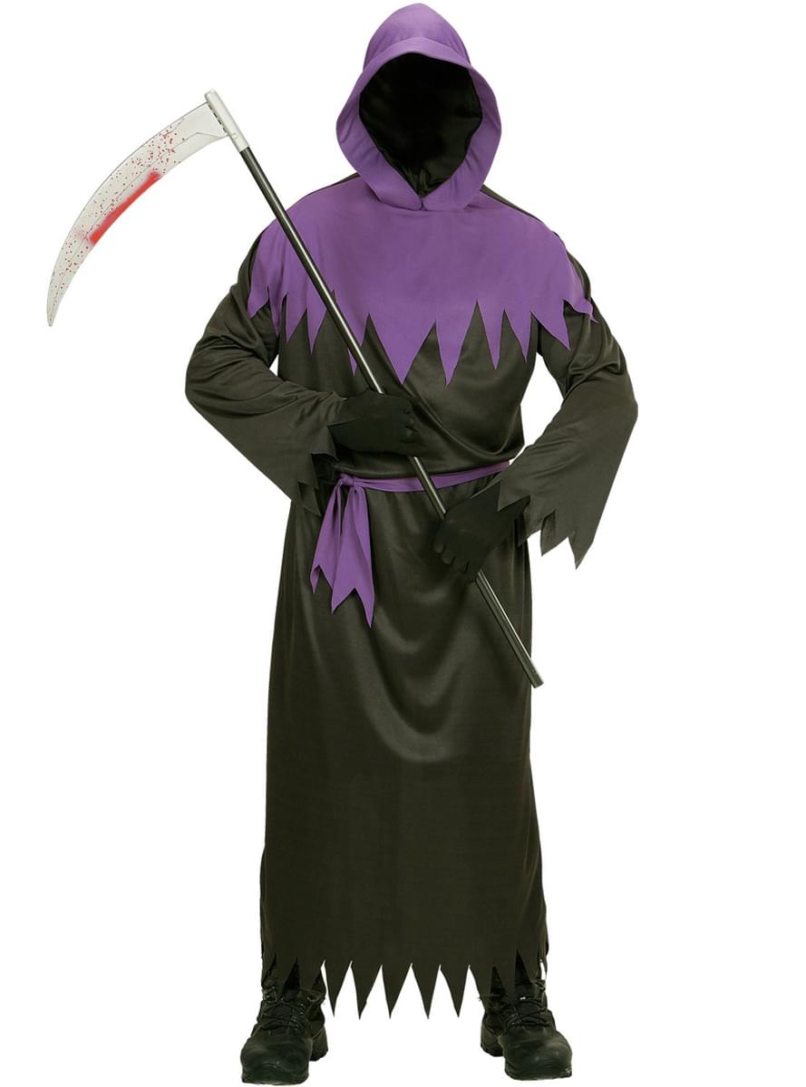 Aterrarás a todos con este disfraz de muerte morada para hombre.