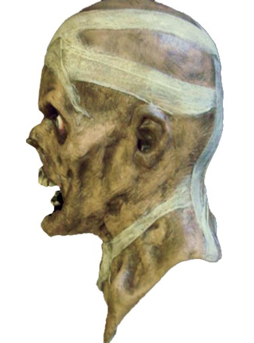 The Mummy has remained in silence for over 6000 years in an underground Egyptian tomb. However, recently a group of explorers discovered the entrance to the tomb. In pursuit of riches and treasure, what they really found was death. The sands of Egypt have once again hidden the tomb's entrance, and this bone chilling mummy, sculpted with the highest quality by Erich Lubatti, waits patiently for the next unfortunate group.
