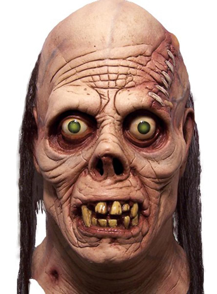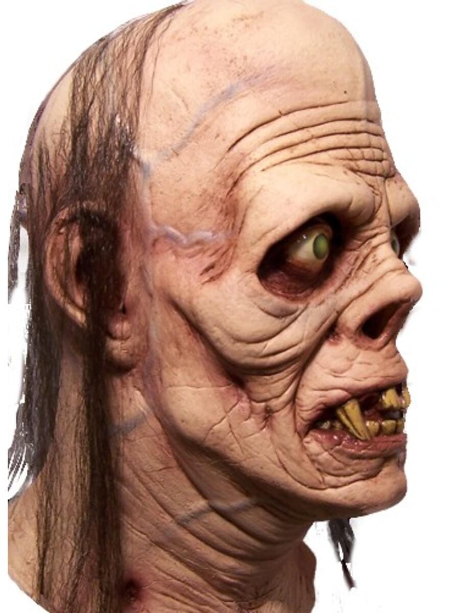 This terrible monster can only be found in the darkest of cemeteries. When this famous ghoul was human, he delighted in the macabre and made a deal with the devil to live forever. However, when his life finally came to an end, the devil betrayed him and transformed him into one of the most vile creatures of the undead. It has a pair of green, protruding eyes, a grotesque face, strands of hair on either side, a scar on the left side of the scalp and an open mouth that exposes a set of revolting teeth. This spectacular mask was sculpted by Justin Mabry.