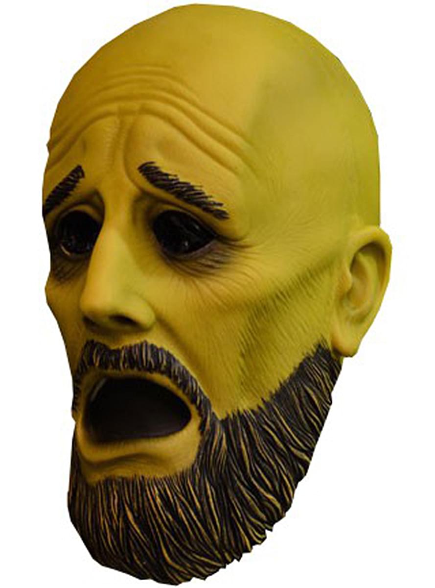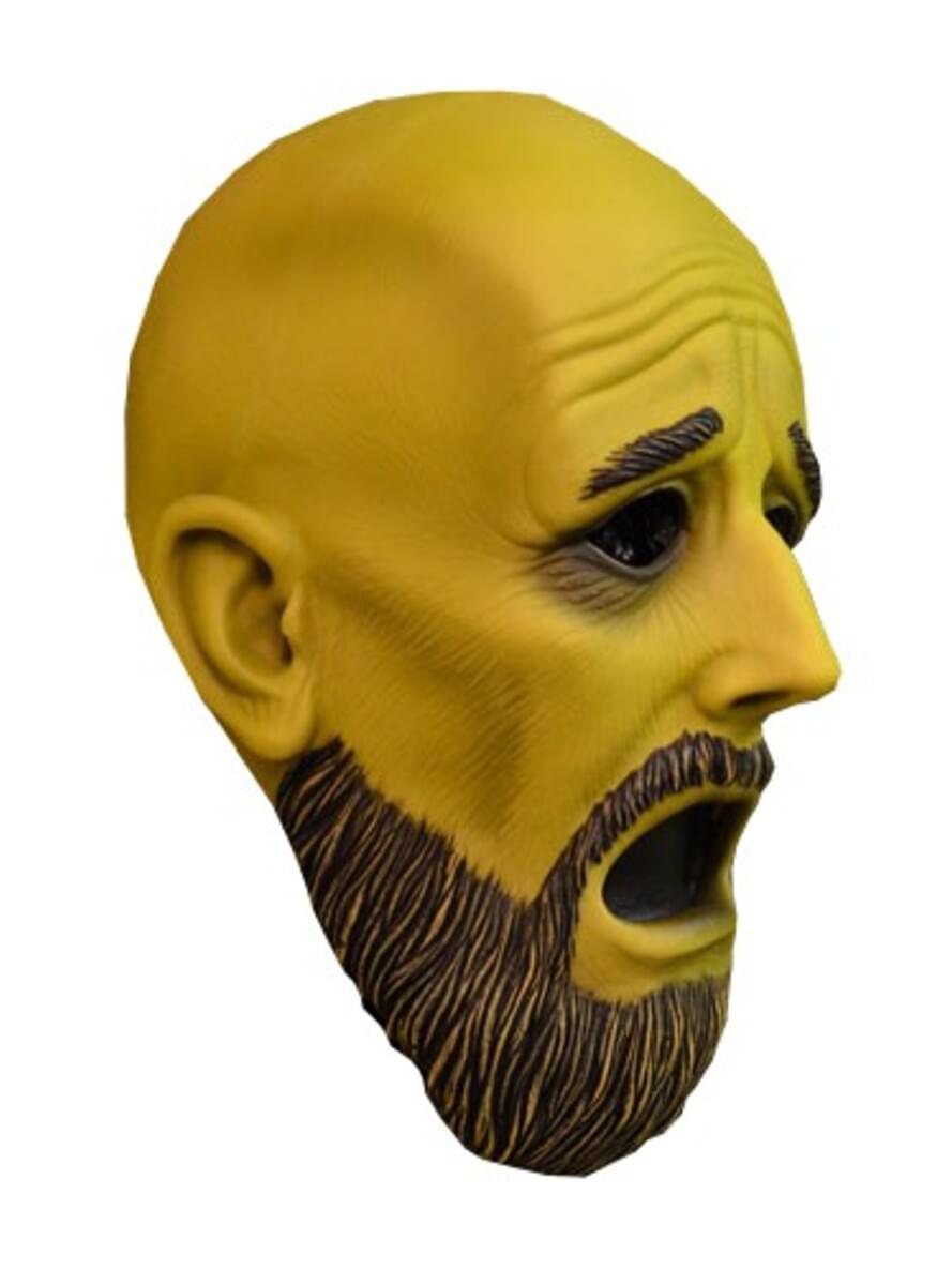 This top quality mask, sculpted by Ryan Bean, depicts a frightened yellow ghost with a gaunt face, black beard and moustache and a look of intense fear.